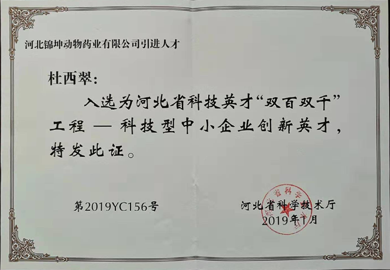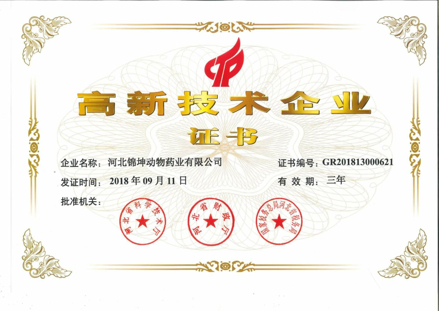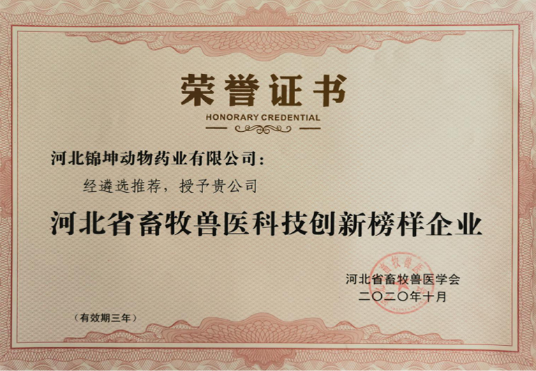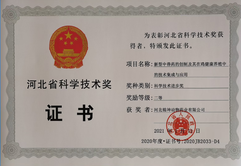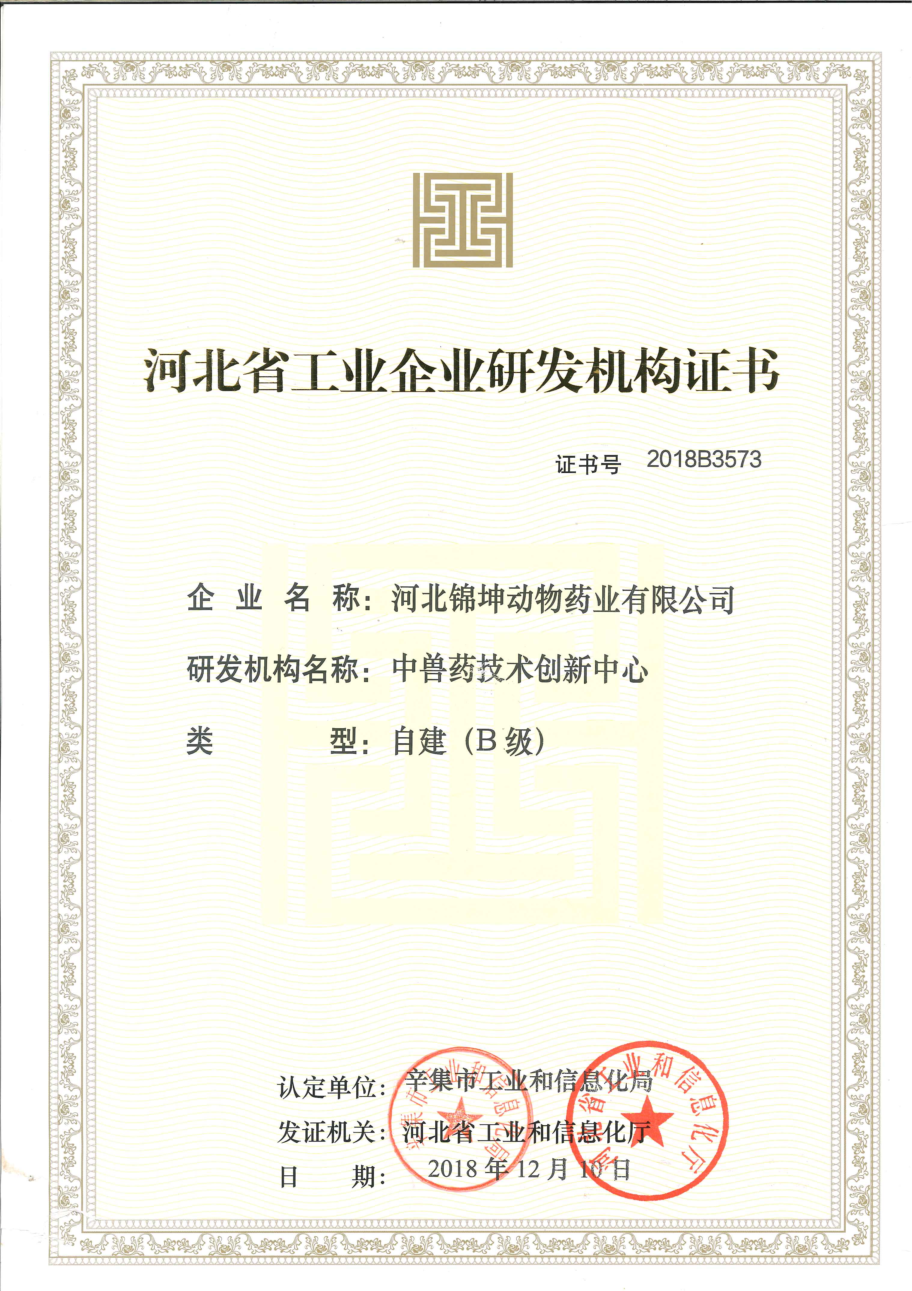 錦坤公司擁有專(zhuān)業(yè)的科研技術(shù)力量和產(chǎn)品研發(fā)能力。自主的研發(fā)機(jī)構(gòu),每年科研投入占產(chǎn)值5%以上。同時(shí)與國(guó)內(nèi)各大專(zhuān)業(yè)院校建立了長(zhǎng)期的合作關(guān)系。擁有多項(xiàng)國(guó)家級(jí)三類(lèi)新獸藥證書(shū)和專(zhuān)利。