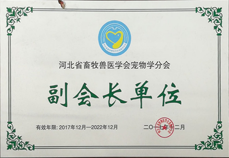 華北地區(qū)中獸醫(yī)研究會(huì)副理事長(zhǎng)單位、河北省畜牧獸醫(yī)學(xué)會(huì)中獸醫(yī)學(xué)分會(huì)理事長(zhǎng)單位、寵物學(xué)分會(huì)副會(huì)長(zhǎng)單位